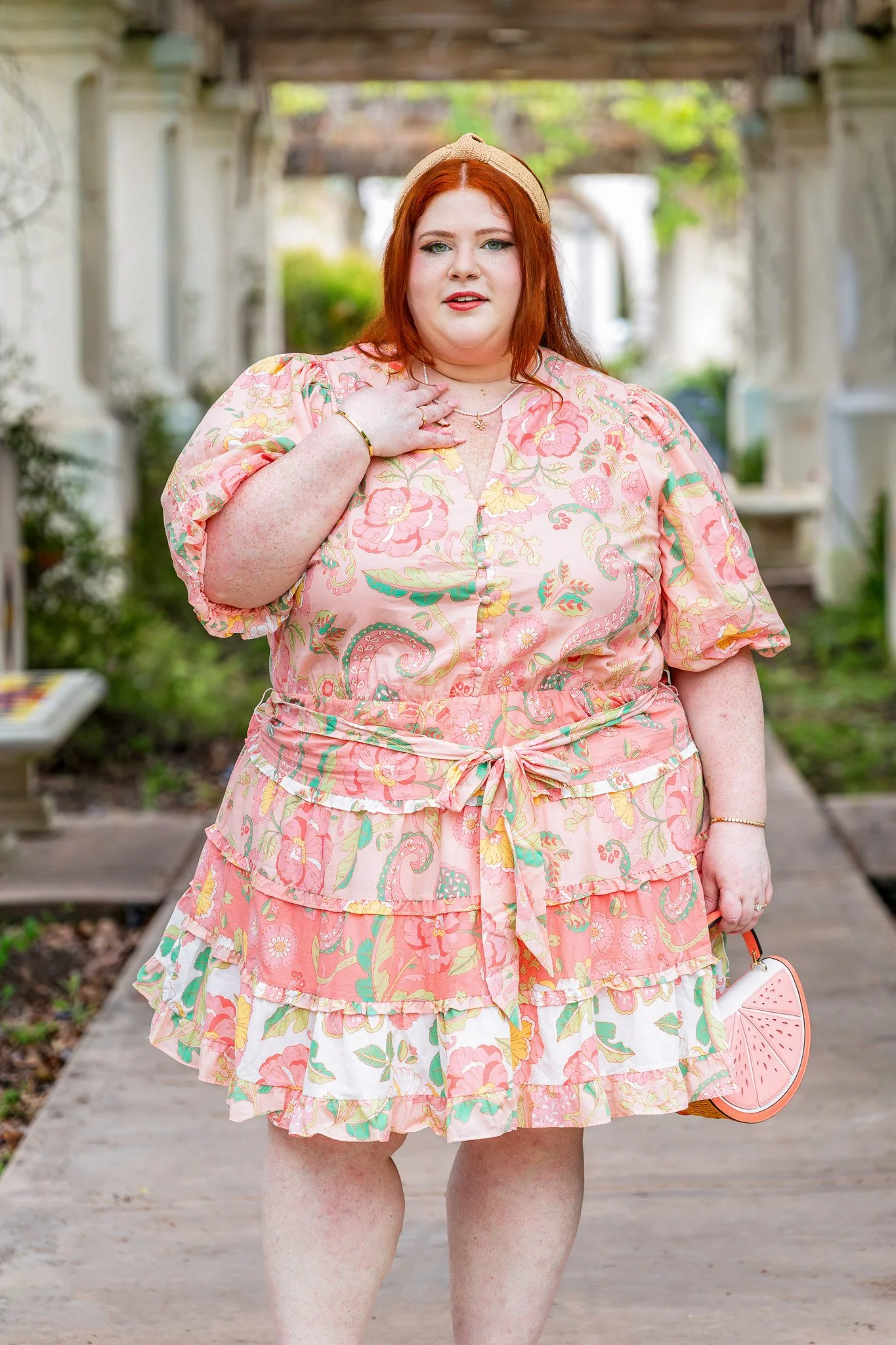 This tiered mini dress is perfect for summer - I love the color, the pattern - everything! I am wearing size 22 (XL) for reference.